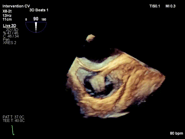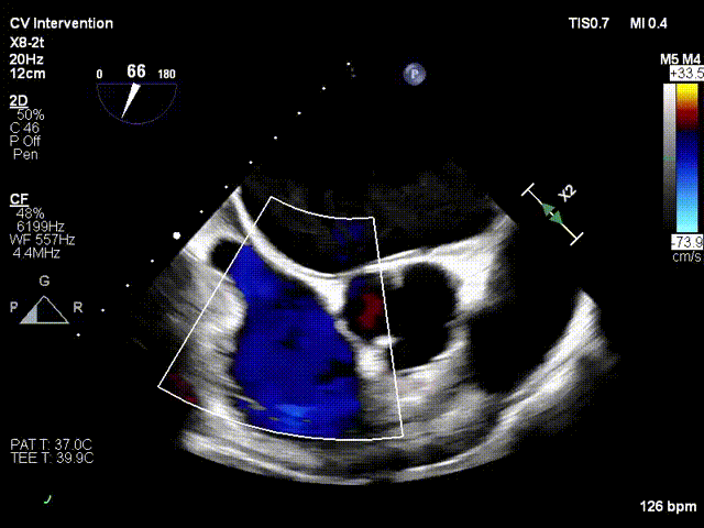 Ultrasound Evaluation: Severe tricuspid insufficiency (mean vena contracta 9mm), with the regurgitation orifice located at the anteroseptal commissure. The mechanism of regurgitation is myxomatous degeneration of the valve leaflets, accompanied by poor leaflet coaptation or reduced coaptation height. The mean diameter of the tricuspid annulus is 37mm. Echocardiographic evaluation confirmed that the anatomical structure is suitable for the K-Clip® system.