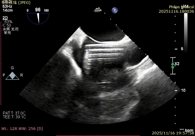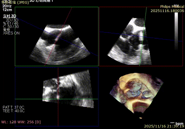 - Immediate Overall Verification: At the conclusion of the surgery,复查 (re-examination) via TEE confirmed no residual shunt or pericardial effusion around the LAA occluder, and the tricuspid valve repair results were satisfactory. The patient remained hemodynamically stable, marking the complete success of the one-stop procedure.