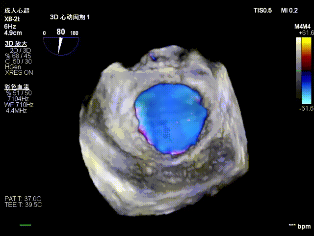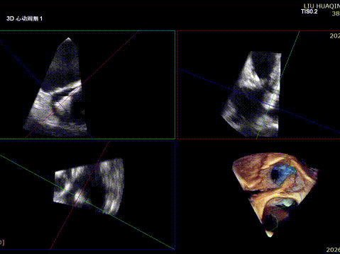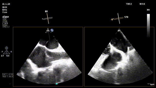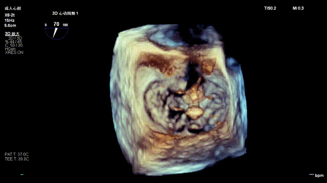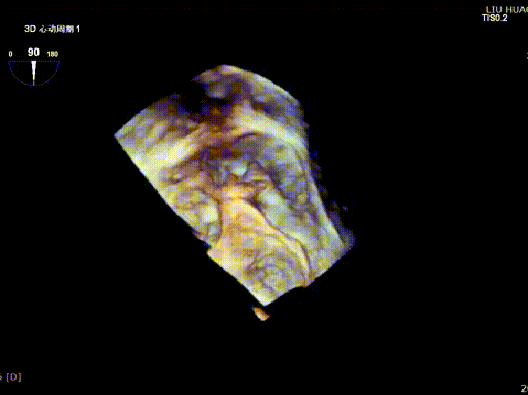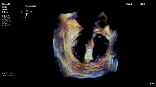 The operation was performed in a hybrid operating room and completed under the guidance of real-time three-dimensional transesophageal echocardiography (3D TEE) and X-ray fluoroscopy throughout the entire process.